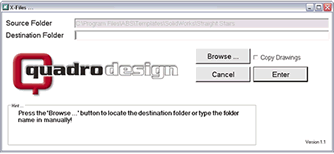 X-Files will make a list of all referenced documents, then if drawings is selected, open each drawing in the current working directory to check its list of references against the referenced document list, if any drawing referenced files match then the drawing will also be copied to the destination directory along with the previously listed parts and sub-assemblies. X-Files has been extensively tested on SolidWorks® versions 2003, 2004, 2005 and 2006.